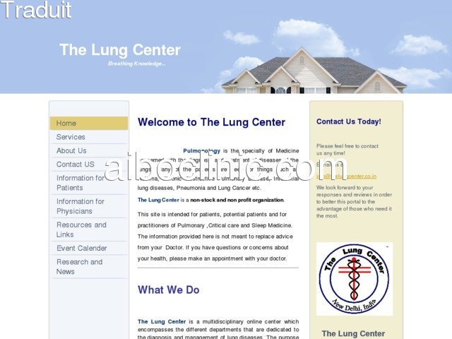 http://thelungcenter.co.in/services Mon Entreprise - Services - Le Poumon Centre offre une gamme complète d'informations pour les patients à tous les stades de la maladie pulmonaire. Le Poumon Centre fournit de l'information aux patients concernant les affections pulmonaires telles que l'asthme, l'emphysème, la bronchite chronique, la bronchectasie,